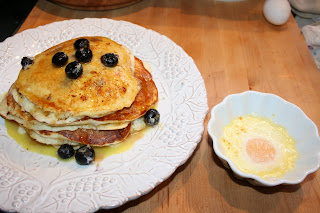 Blueberries were huge and delicious looking all summer. There were so many blueberries finding their way into this kitchen that I actually started getting sick of blueberries, which means I started freezing them so not only would the blueberries be out of sight BUT I was freezing them (meaning the blueberries were not spoiling in my refrigerator SO no guilt). Now, making hotcakes is much more fun because I can open a Ziploc bag of blueberries and plop a few on each hotcake. Donna Hay's ricotta hotcakes were screaming for color (blueberries). I would also like to add: Donna Hay's ricotta hotcakes are tender, fluffy and full of great breakfast flavor. Just delicious!