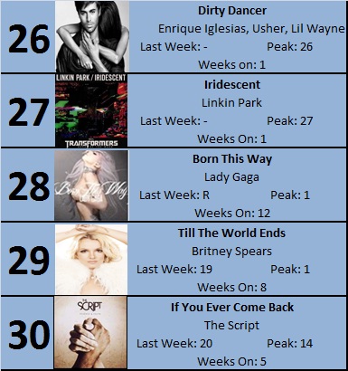 Your weekly charts just became bigger as from 20 the charts will now count the Top 30 songs I so love each week. So for the week ending June 19, 2011, here are the 30 songs that kept playing on my ears. Beyonce repeats as Number 1 for the second week running.